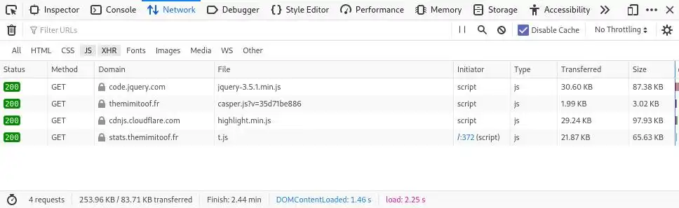 Si tout va bien, le chargement du fichier portal.js ainsi que l’appel API ne devrait plus figurer parmi les ressources appelées.