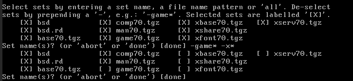 C’est désormais l’heure de l’installation d’OpenBSD. Pour aller au plus simple, j’ai suivi l’assistant d’installation en mode autopilote à l’exception de la configuration de l’utilisateur et des tarballs de binaires à installer.